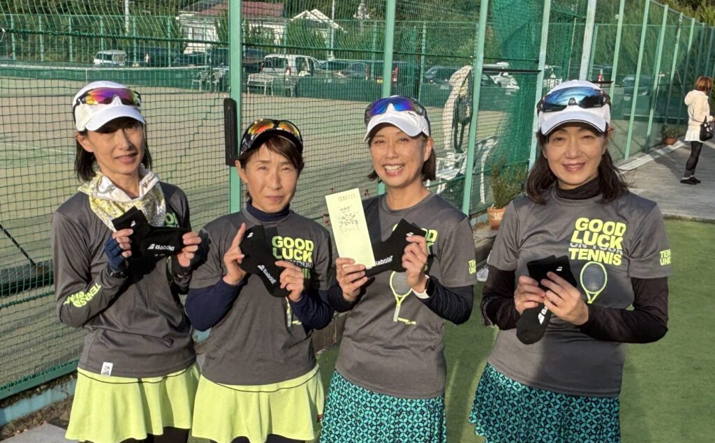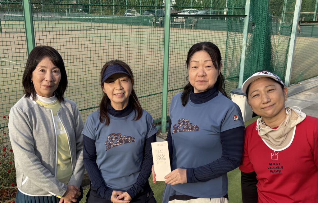 2025年11月9日 / 最終更新日 : 2025年11月9日 Naruke 大会結果 2025年11月百草大会結果(チーム戦) 百草大会、参加9チームでの大会となりました。穏やかなお天気の中、無事に終了しました。 1位リーグ 優勝 『 そーたれん 』 山本 知世さん 名倉 恵子さん 木谷 裕子さん 鈴木 圭子さん 1位リーグ 準優勝 『 チーム「M」 』 金秋 陽子さん 植山 絵美さん 三枝 佳代さん 斉藤 恭子さん 2位リーグ 優勝 『 森田塾 』 石澤 真理さん 後藤 幸子さん 風間 和美さん 池田 美穂さん 3位リーグ 優勝 『ピグレット』 吉井 みどりさん 池田 みきさん 平野 芳恵さん 羽場 道子さん 1位リーグ 2位リーグ 3位リーグ